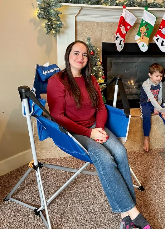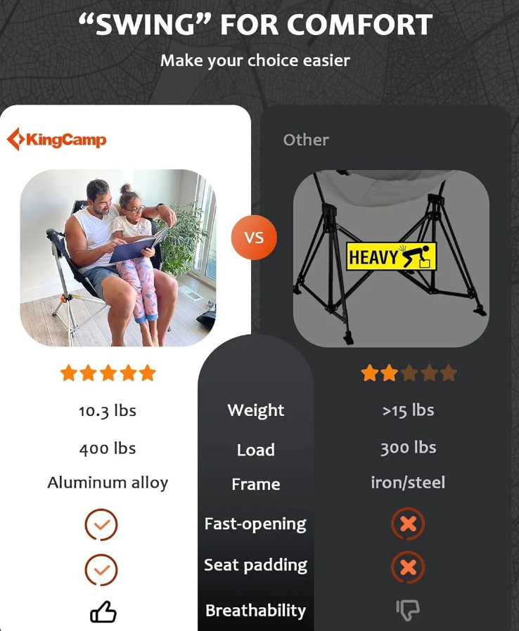 Zunanji kampirni stol je 37,8 "x27.1" x49.2 ", imate prostorno sedež, da se mahate z neomejenim, visok naslonjač pa vam lahko v celoti podpira hrbet. Noge prosto.