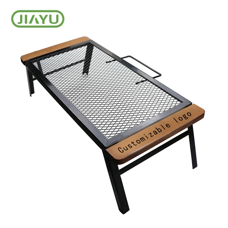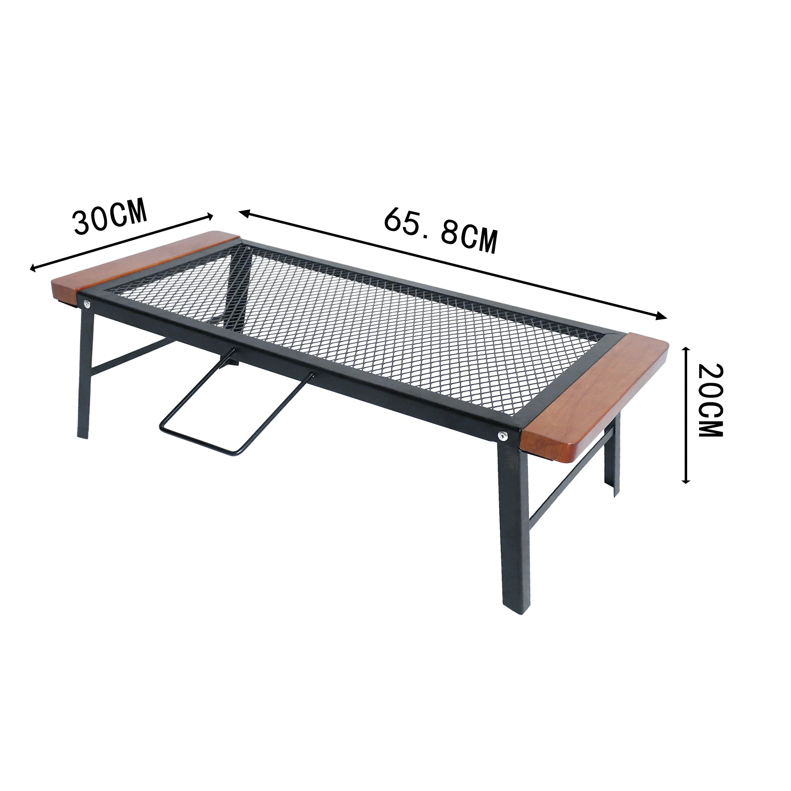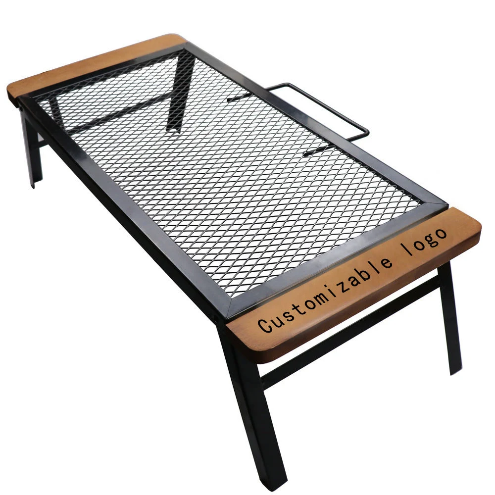 Zložljiva železna zunanja miza za kampiranje, zunanja proti lestvicah lesenega ročaja kampiranje žara železna miza priročna zložljiva mreža
