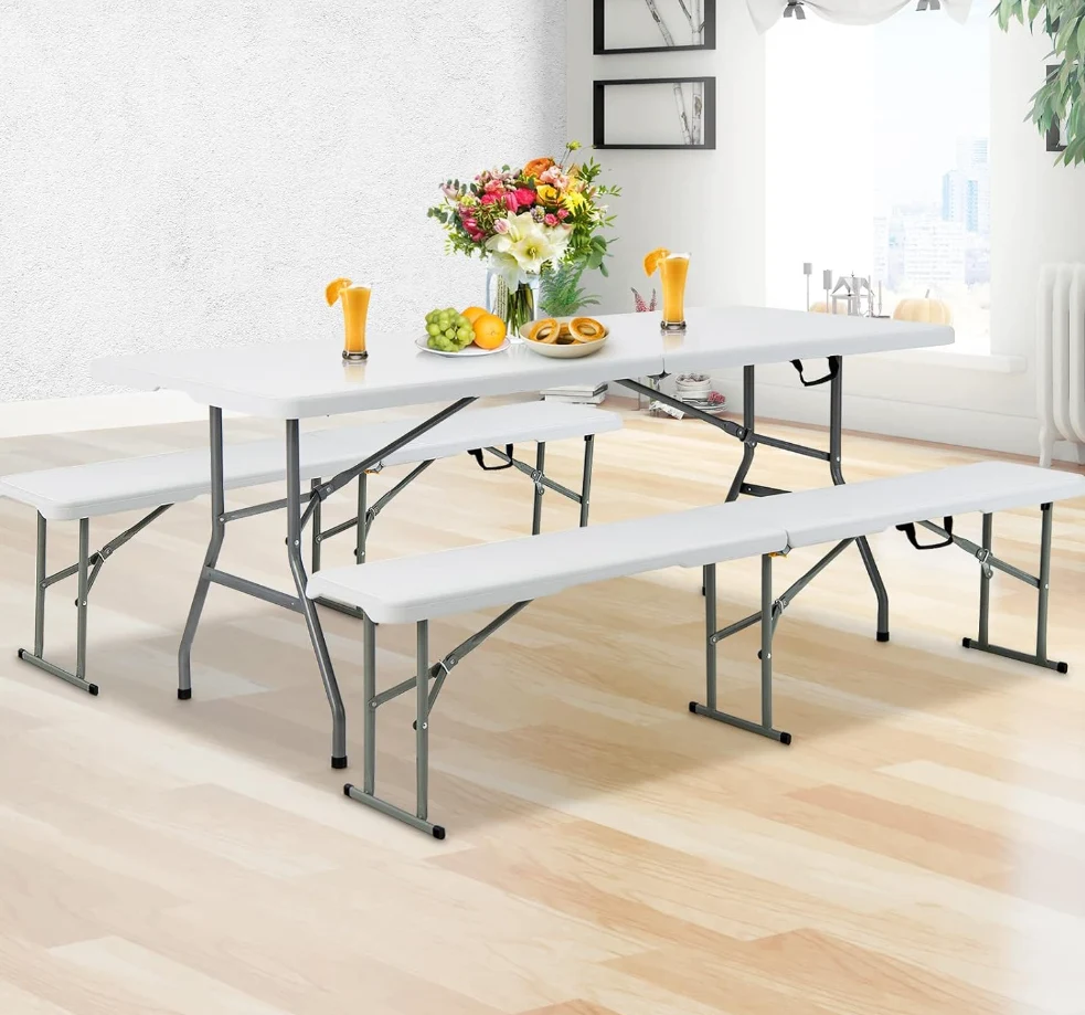 Kakovostna zunanja miza za kampiranje, bela hdpe bela pravokotna miza za piknik plastična zložljiva miza na prostem, ki zagotavlja prostoren prostor za zadrževanje hrane, sladic, pijač ali prigrizkov. Ta zložljiva miza lahko sprejme približno 8 ljudi, ki se zberejo naokoli za družinski obrok ali zabavo. In vsi kotiček mize so zaobljeni, da se prepreči naključne poškodbe.