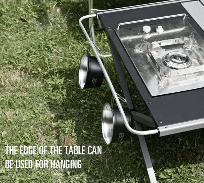 Lahka večfunkcijska zložljiva tabela IGT glede na vaše potrebe. Kot nalašč za kampiranje, žar, kuhanje na prostem in drugo. Stran mize lahko uporabite za obešanje posode in pripomočkov