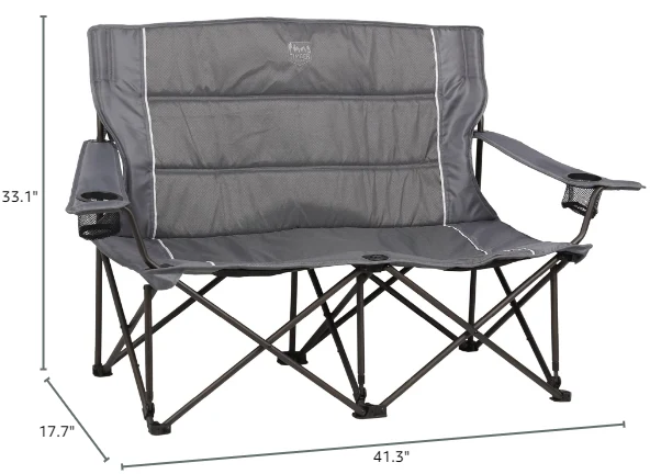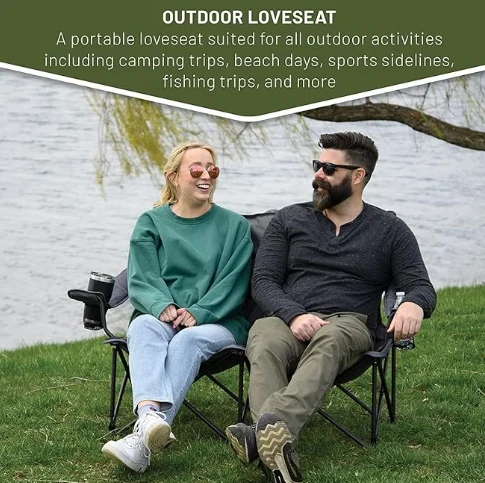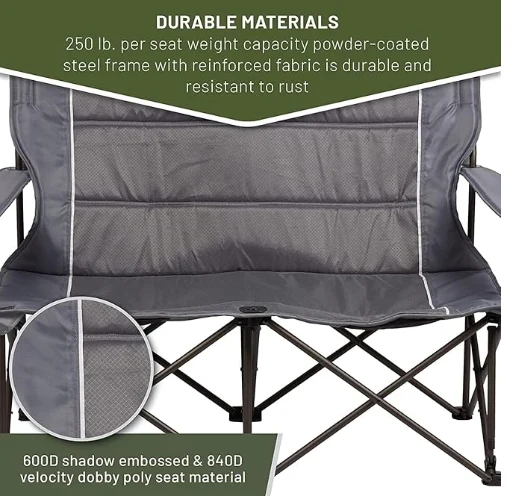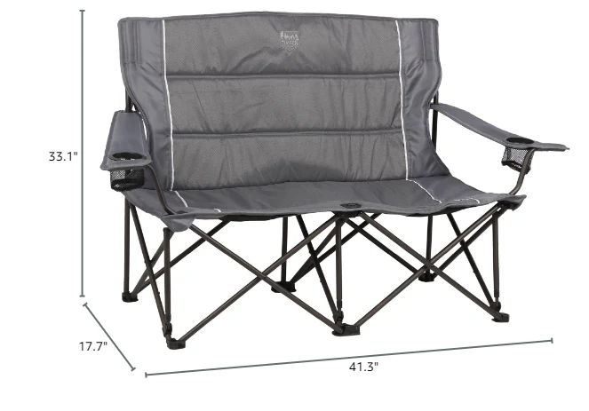 Predimenzioniran oblazinjeni zložljivi stol z ljubeznijo, kampiranje je običajno nižje v višini sedeža kot tradicionalni kampirni stoli, kar omogoča bolj sproščen položaj sedežev.