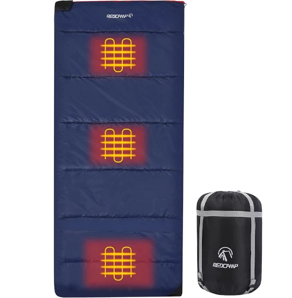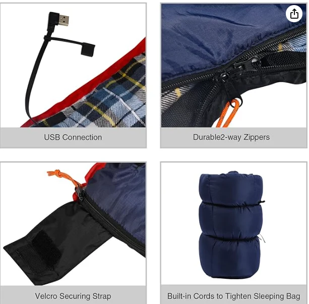 Prenosna ogrevana vodoodporna spalna vreča s pritiskom na gumb vam olajša prilagajanje temperature glede na vaše potrebe, kar prinaša toplino in udobje vso noč.