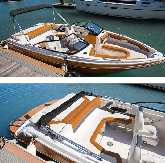 Nerjavni čoln Bimini Top, izdelan iz poliestrskega platna pomorskega razreda 600D z dvojno prevleko PU, naš skladiščni čevelj zagotavlja dobro zaščito pred sončno svetlobo, morsko vodo, dežjem in prahom.